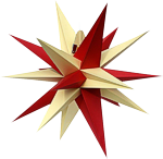 Seit 2013 hat sich der Annaberger Stern in 3 Größen und 2 Formen, rund und flach, durchgesetzt. Die Sterne bestehen aus Papier und lassen sich im zusammengefalteten Zustand in einem flachen Karton verstauen.